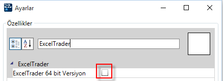 Bilgisayarı 64 bit olan müşteriler ise ExcelTrader kullanmak istiyorlarsa, öncelikle TradeMaster'ın içerisinden Ayarlar penceresinden "ExcelTrader 64 bit Versiyon" seçeneğini seçmeleri ve sonrasında "TradeMaster->Alım Satım Araçları->ExcelTrader" menüsünü kullanmaları gerekmektedir.